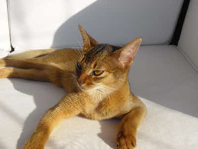 Mittelgroß, elegant und majestätisch dank gewölbtem Hals, langen Beinen und Schwanz, ist die Abessinierkatze eine ausgewogene, muskulöse und geschmeidige Katze mit einem warmen und leuchtenden, deutlich getickten Kurzhaarfell. Ihre breiten, beiseite gelegten Ohren und die großen Mandelaugen verleihen der Abessinierkatze ihr typisch waches Aussehen, obwohl alle Linien weich und anmutig sind.